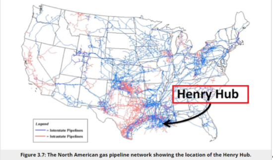 圖2:美國的天然氣管線網絡與亨利港(Henry Hub)的位置